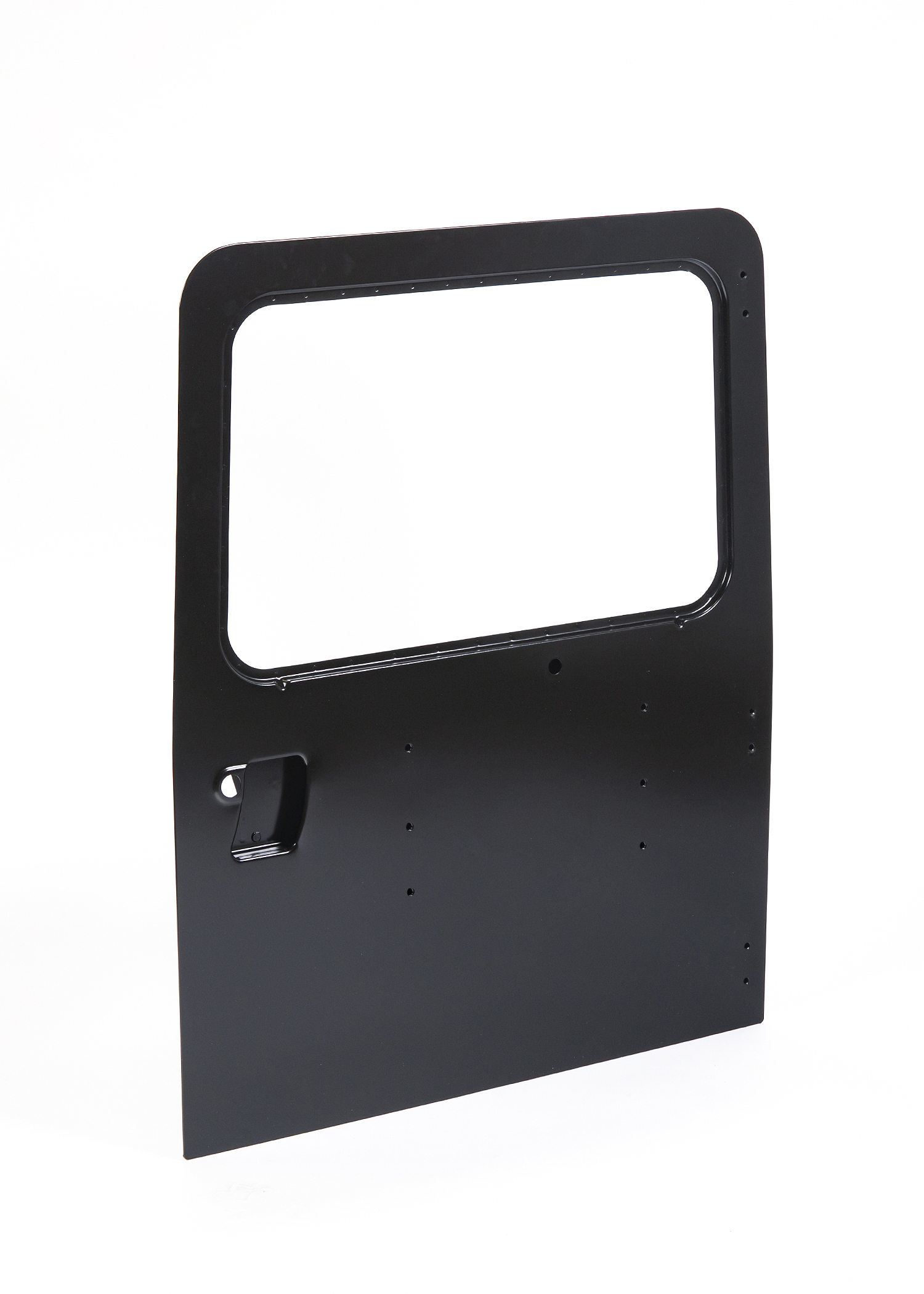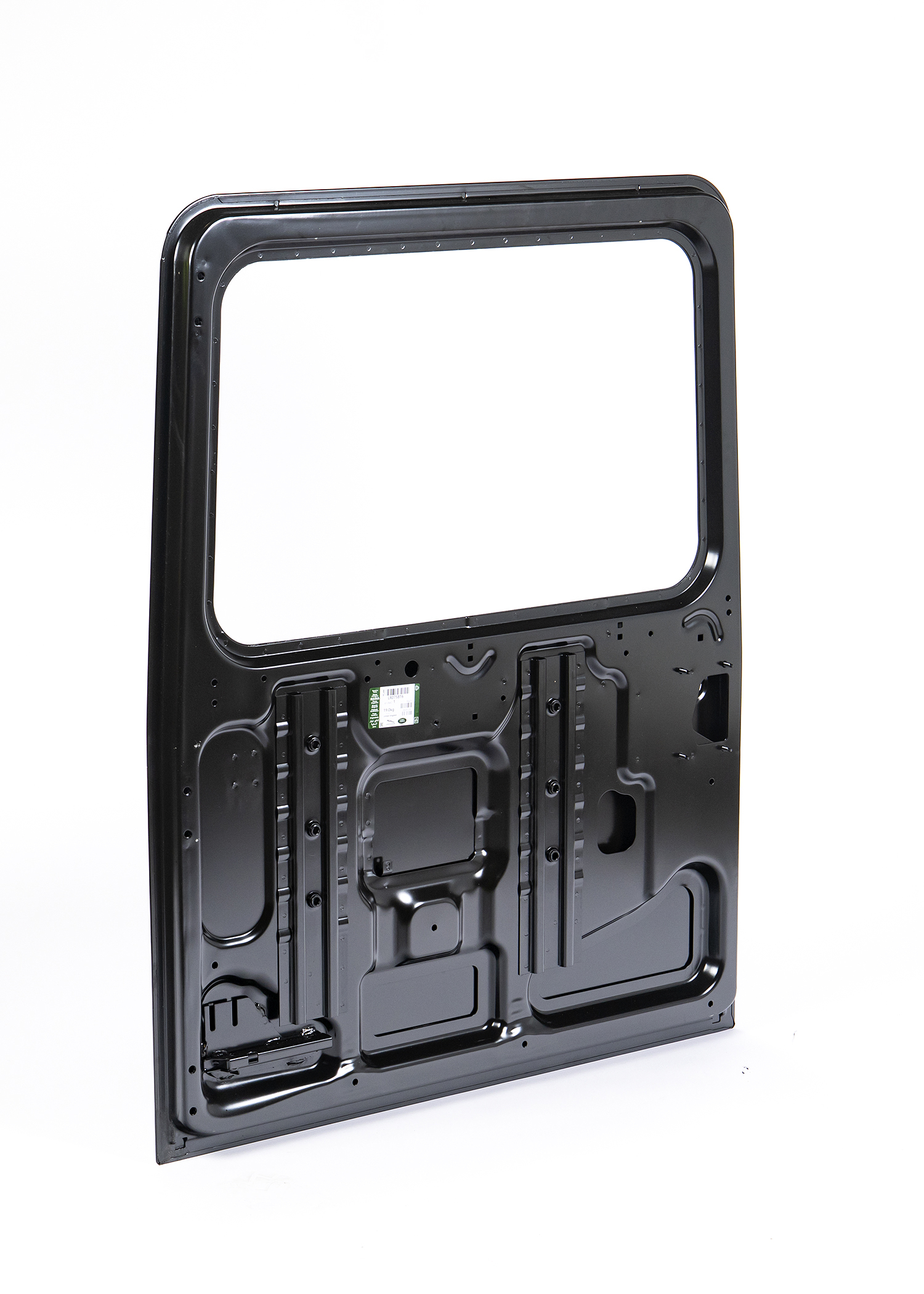 Manufactured as a full door shell, LR075816 is supplied without hinges and is designed to accept the vehicle’s existing hinge assemblies, lock mechanism, spare‑wheel carrier (where fitted), internal bracing, and perimeter weather seals. The door features pre‑formed hinge mounts and latch interfaces, pressed to match the Defender’s rear body aperture geometry. Genuine Land Rover units are electrophoretically coated for corrosion resistance and are supplied in primer ready for painting.